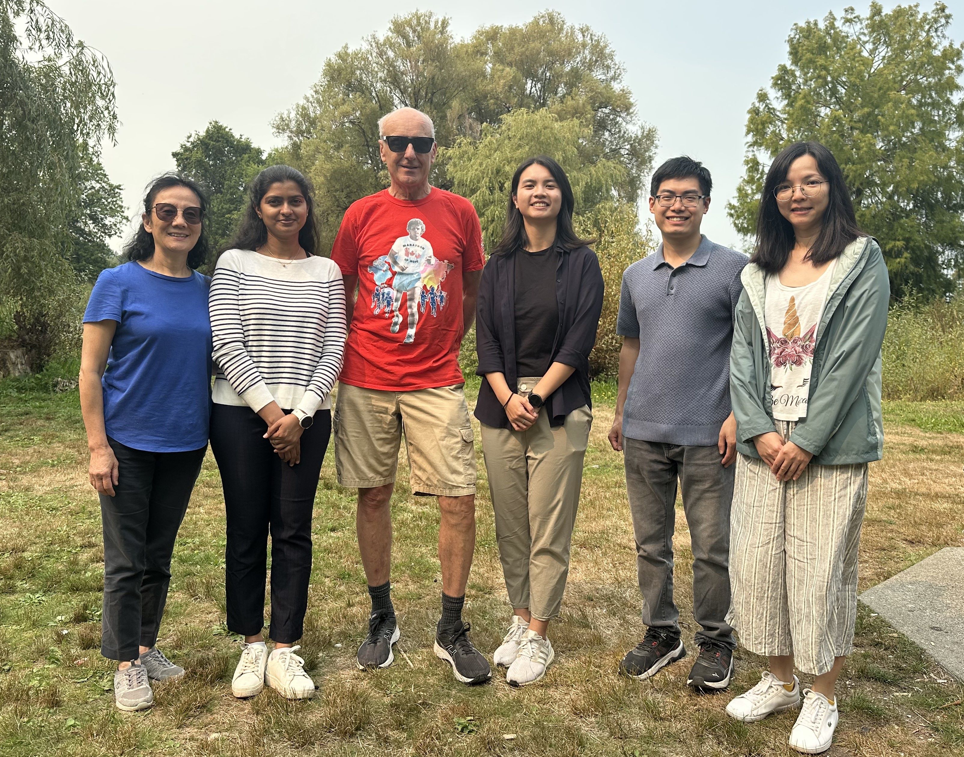 Lansdorp lab September 2025. From left to right: Yanni Wang, Rashika Ranasinghe, Peter Lansdorp, Tiffany Leung, Peter Lansdorp, Daniel Chan and Mianne Lee (missing Geraldine Buchanan and Trang Nguyen)